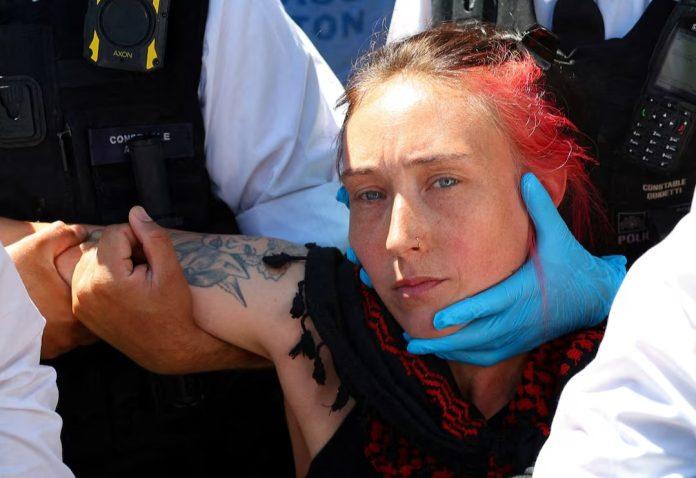 British police arrested scores of supporters on Saturday of a pro-Palestinian protest group that was banned this month under anti-terrorism legislation.