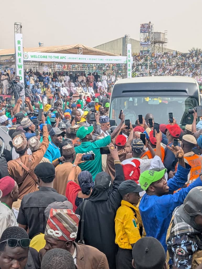 Nigeria’s Vice President, Kashim Shettima is in Kano State to formally receive Governor Abba Yusuf into the All Progressives Congress (APC), at a grand reception billed for the Sani Abacha Stadium, Kano.